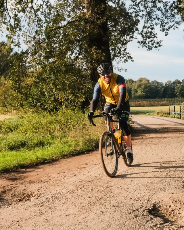 Sterrato Sallandia is geen doorsnee graveltocht. Het is een rit waar sport, beleving en landschap samenkomen. De route is voor 80% vernieuwd en voert je door het hart van Salland en de rand van Twente. Denk aan kronkelende grindwegen, rustige bosstroken, vergezichten over akkers en typisch Sallandse boerderijen. Misschien spot je zelfs een ree onderweg.